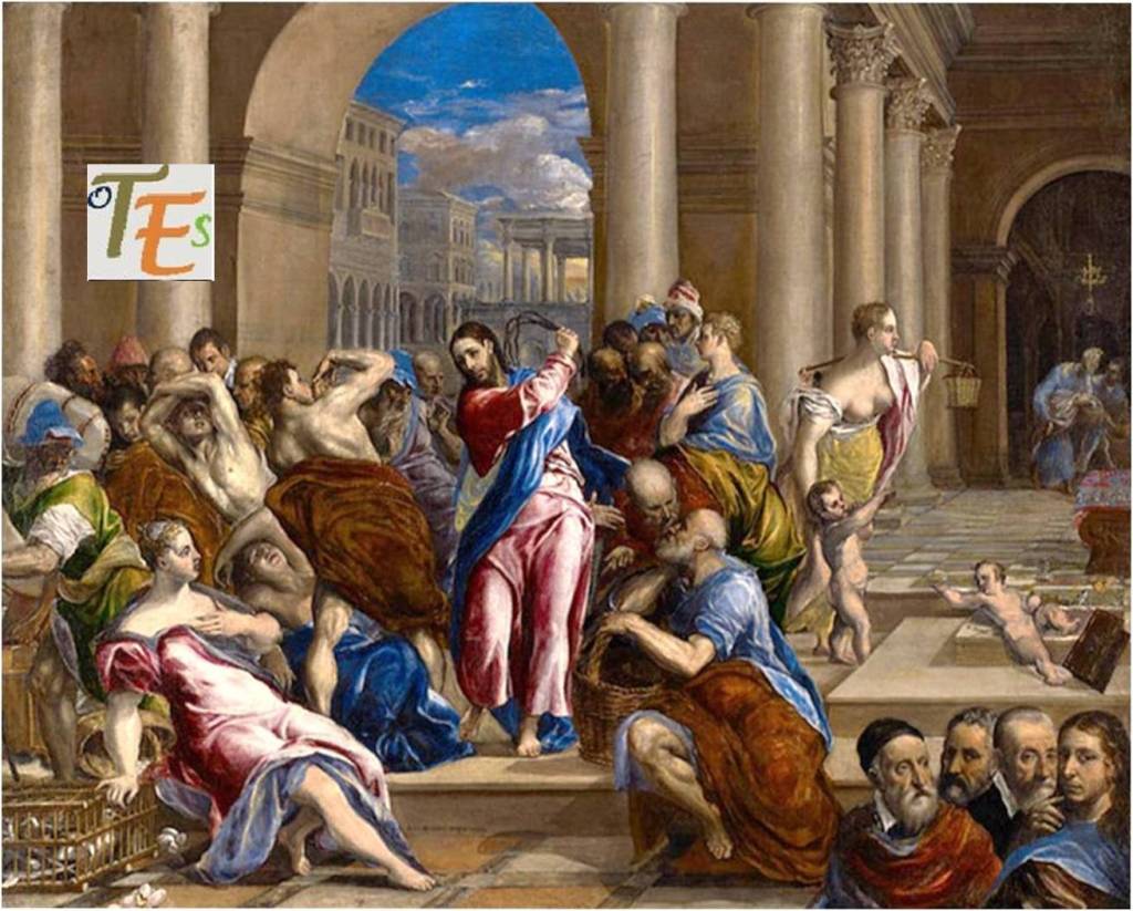 Otro dato a tener en cuenta sobre lo que aquí explicamos, le podemos observar en uno de los cuadros pintados por el artista sobre la Expulsión de los Mercaderes del Templo de su etapa romana, encontrándose ahora en el Instituto de Arte de Minneapolis. Dejándonos testimonio de su saber al pintar en una de sus esquinas a los artistas en los que se inspiró, como Ticiano, Miguel Ángel, o Rafael y entre ellos su amigo de aquella época romana Julio Clovio.