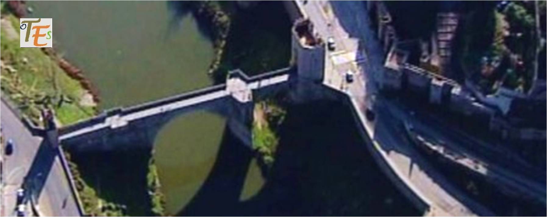 Puente que ha soportado las crecidas del río y los envites de las guerras. Aquí le vemos aún erguido como un romántico gigante que abraza suavemente a los viajeros que por el pasan a la ciudad y al salir de la misma por el mismo sitio, hacia la estación de ferrocarril, vuelven la vista hacia el puente embelesados, creyendo que es un espejismo irreal en nuestro tiempo y es entonces cuando toman de etse una fotografía para que perdure en su recuerdo.
