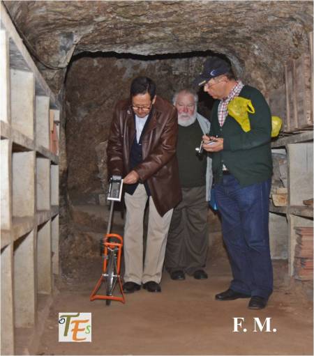 Tras las presentaciones y el desayuno en la cafetería del torreón de los Templarios en el Alcázar, ya en la “Casa del Duende”, se llevó a cabo la carga de baterías de los aparatos de medida. Entramos sobre media mañana en la cueva de San Miguel y cada equipo se puso a investigar por su lado las posibles alteraciones que podía tener dichas galerías subterráneas, para poder valorar sus efectos si los hubiera y quizás descifrar su antigüedad.