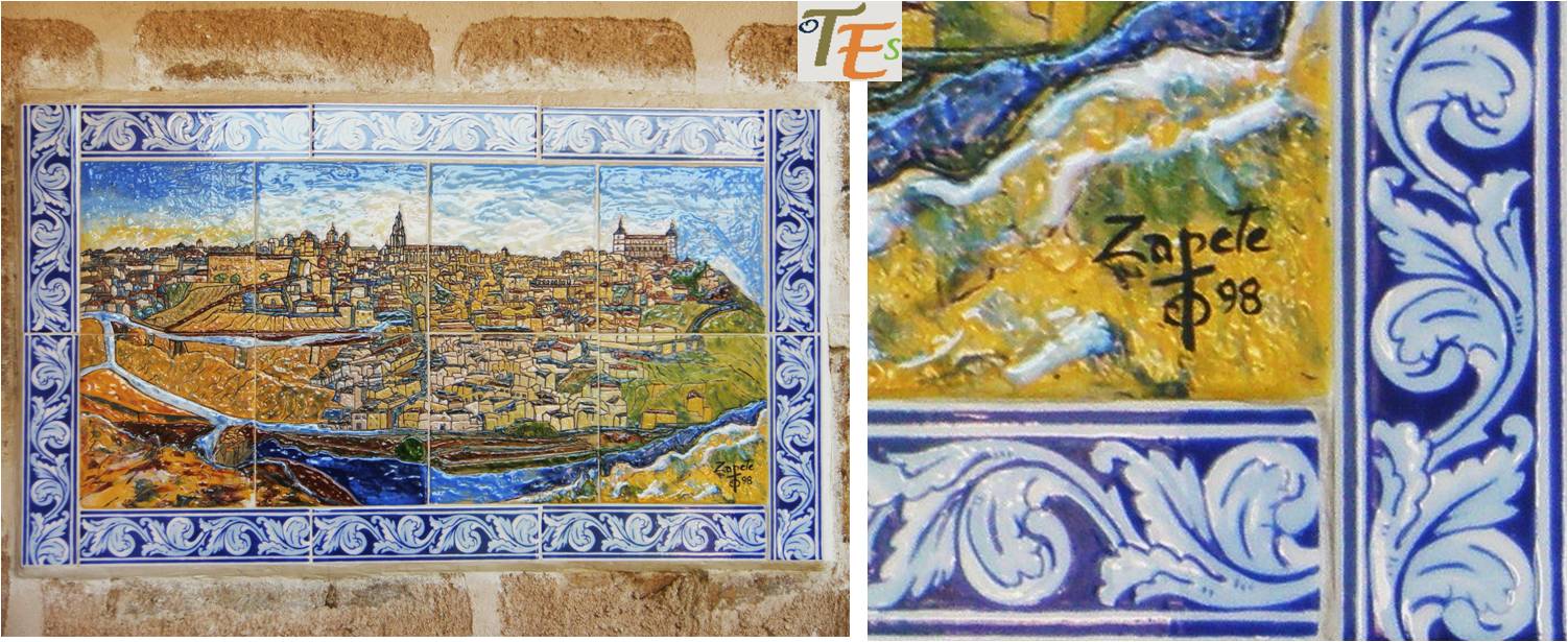 A mi amigo Salva, también le debieron llegar los efluvios de la casa e influirle en su persona, pues comenzó a fabricar cerámica en cuerda seca, llegando a tener una gran técnica y fabricando piezas muy codiciadas tanto para él como para sus amigos, firmándolas como “Zapete”, por tal motivo presento aquí algunas de ellas, de tipo islámico, otras se encuentran en la cocina fabricada en su patio, réplica de la del Museo del Greco, donde tantos años ha trabajado. Tengo también la suerte de tener un Toledo en cerámica, firmado por él.