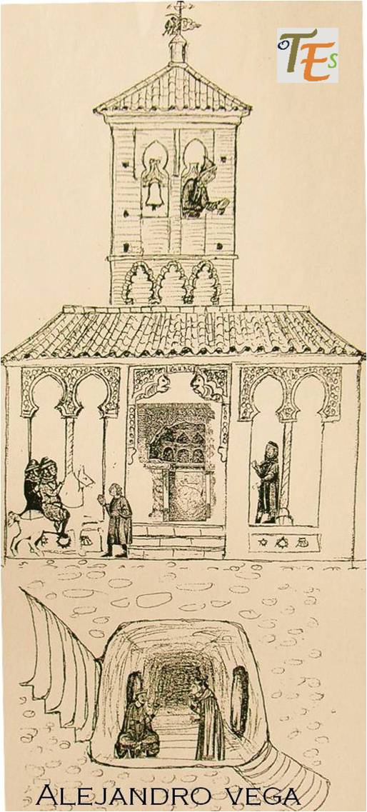 Pero esta fama, debe de venirles realmente a estas calles, porque según los anales de la historia y sobre todo la obra “Toledo Pintoresca” escrita por José Amador de los Ríos en el año 1845, al describirnos sus más célebres monumentos, en su página 309 dice que la casa-palacio (manzana) que había pegada a esta iglesia, perteneció a la orden del Temple, legándonos además un dibujo firmado por Blanco, referente a una hornacina denominada como “alacena templaria”.