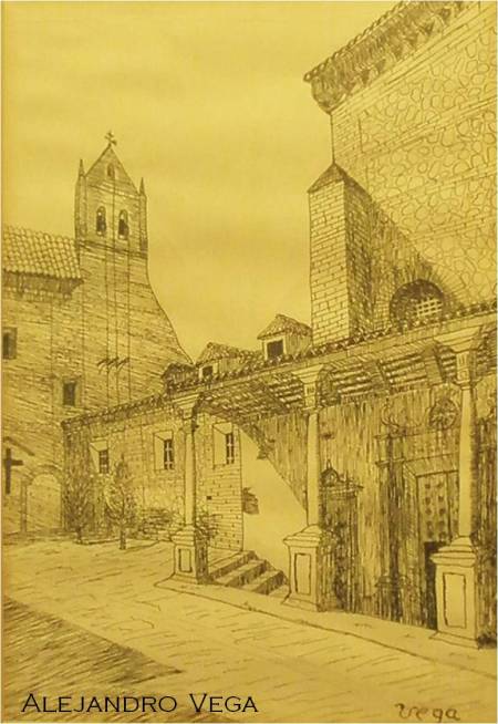 Presento aquí el dibujo de la plaza de Sto. Domingo “el real”, con su iglesia porticada en estilo dórico, en una esquina se observan cipreses, de los cuales escribe Bécquer en sus poesías, habiendo crecido bastante desde que los dibujé, por encima la espadaña del propio convento, dando verdadera personalidad al conjunto.