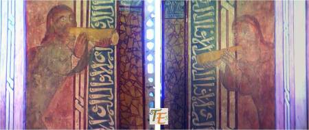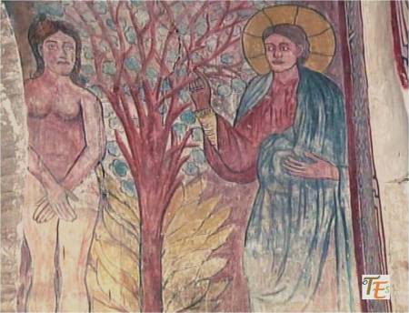 Contiene esta iglesia entre ellas el  “Tetramorfos”, y de una forma muy recóndita el Paraíso Terrenal con Eva, el Árbol de la Vida y Dios, siendo de una gran relevancia además de contener la palabra Edém. Esta es una de las sorpresas que guarda celosamente este magnífico templo, con sus bellas pinturas de tipo románico, cual verdaderas piedras preciosas. Pero sobre todo en lo que más se centran son en el Juicio Final, cuestión misteriosa que nos deja un enigma por resolver sobre el lugar.