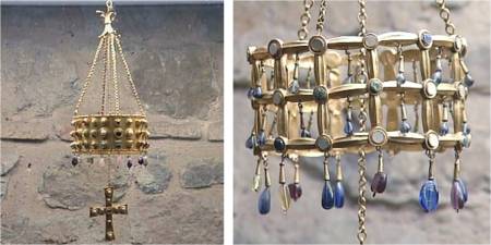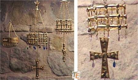 Entre ellas, se encuentra la más espectacular la del rey Recesvinto y otras con las cruces votivas de estos reyes. Tesoro que se guardaba en Toledo, teniendo una importancia capital y dando a esta ciudad fama universal en tiempos visigodos, pues junto con el “tesoro antiguo”, fueron estas piezas junto a otras sus talismanes más preciados y envidiados en todo el mundo conocido entonces.