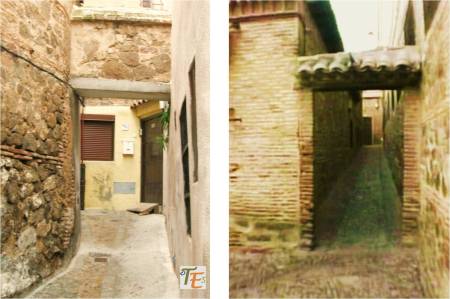 Estos eventos solo pueden ocurrir en ciudades como Toledo, que aunque no parecen tener lógica, debemos recordar que esta ciudad se quedó intacta desde la edad media y yo mismo recuerdo viejas puertas que daban paso a antiguos edificios en esta calle, antes de ser demolidos para construir nuevos edificios. Dejo aquí dos plumillas donde se observa el airoso cobertizo que embellece a esta calle.