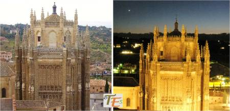 Todo un espectáculo, desde donde observamos el estilizado ábside o cabecera del templo, con su cimborrio, correspondiendo al soporte y la corona de los Reyes Católicos, sus cresterías, pináculos, guardianes de armas y cadenas. La idea original de un gran maestro como Juan Guas, para dar gusto al criterio de una reina dominante como Isabel I, que quería aquí mismo una colegiata para su enterramiento y a la que le pareció poca cosa el edificio que se estaba levantando  para tal idea.
