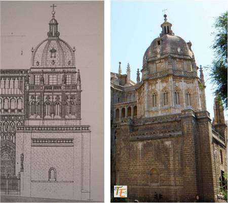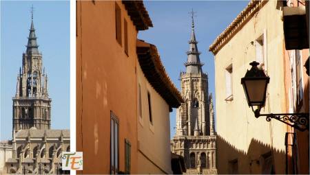 Pero lo que más llama la atención, es que entre las calles y callejones de Toledo, su silueta se recorta entre medias de sus altas paredes, elevándose hacia el cielo, recordándonos donde se encuentra el templo primordial de la ciudad y siendo un referente cardinal, para no perdernos en el laberinto fundamental con el que está construida esta ciudad universal.