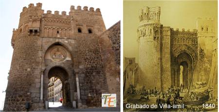 Su traza es muy bella pues la compone un antiguo torreón de la muralla, a la que se adhiere la zona de la puerta en sí, con sus arcos de entrada más otros entrecruzados y lobulados en su zona alta, terminando con una torre albarrana semicircular, en el estilo característico que determina a esta ciudad, como es el mudéjar. Existe un grabado de 1840, ejecutado por Gregorio Pérez de Villa-Amil, que forma parte de su obra “España Artística y Monumental”, cuya inspiración está basada en esta característica y bella puerta.