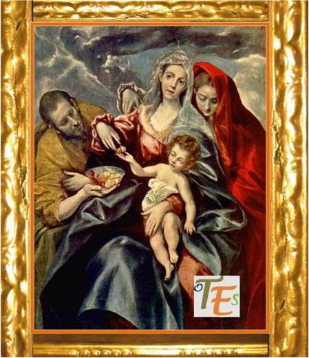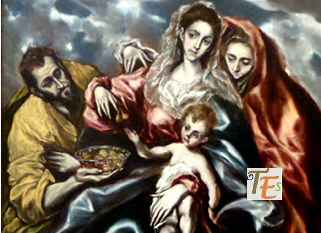 Entre los detalles investigados por el Greco en este tercer tipo con el que representa a la Sagrada Familia, observamos incorporada a Maria Magdalena.