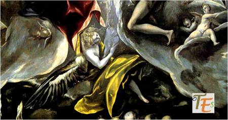 Del caballero exánime, sale el alma hacia las alturas conducida por un ángel prototípico de otras obras del cretense. Sube por un tunel, el cual describen algunas personas que han estado a punto de morir.