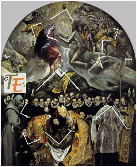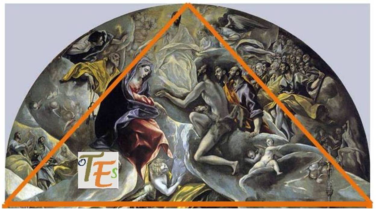 Esta obra de arte está basada en una geometría sagrada, siguiendo la más pura tradición platónica, superando por su composición a las mejores obras del arte, pues el Greco nos lega en ella una fascinante e inigualable creación dorada.