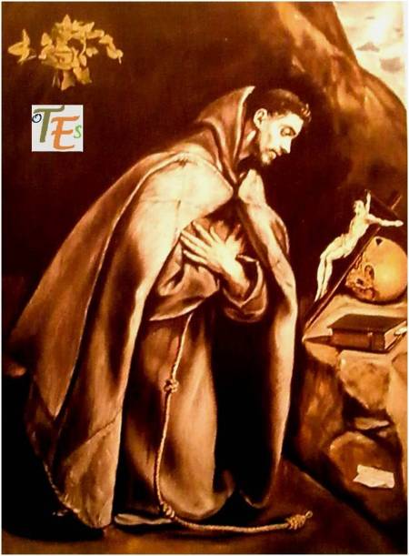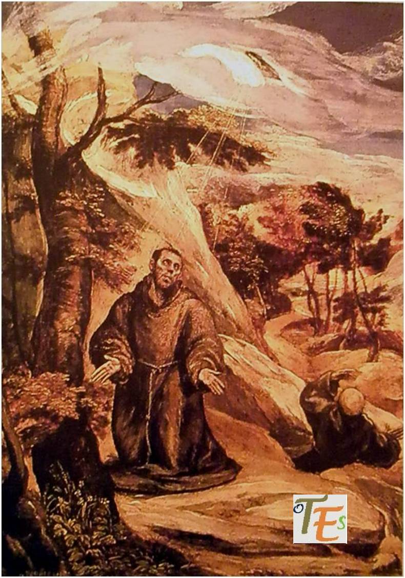 Descripción de uno de los primeros cuadros del Greco, pintado ya en Venecia, donde observamos a san Francisco enseñándonos los estigmas en sus manos, acompañado por el hermano León en el monte Alvernia.