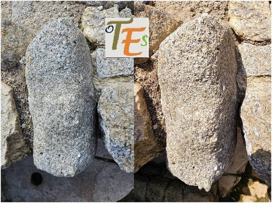 Tras el deterioro de esta importante iglesia visigoda desde su abandono en el tiempo, sus materiales se encuentran diseminados por los alrededores, amén de otros que hayan podido ser reaprovechados, por ello y estudiando los bloques en piedra que conforman aún parte de sus muros interiores entre ábsides, saltó de nuevo la sorpresa.