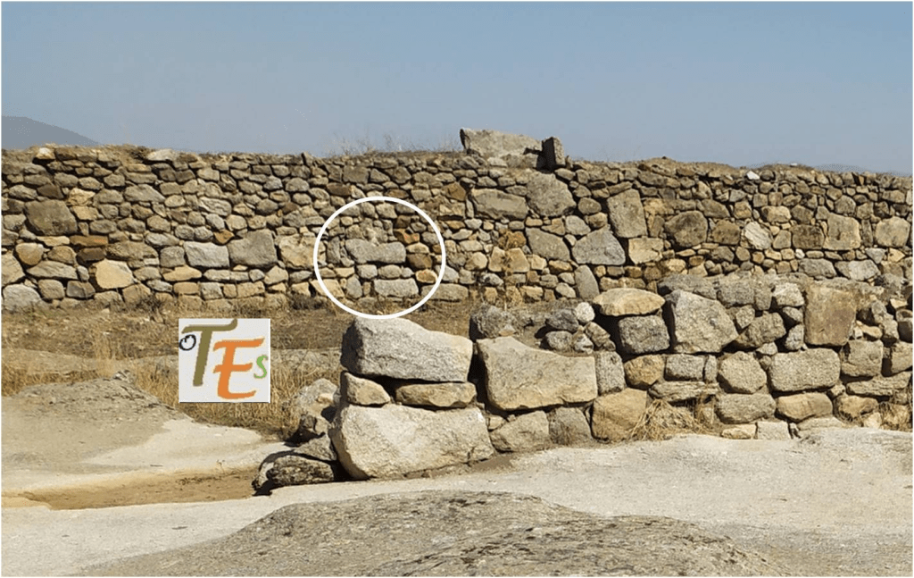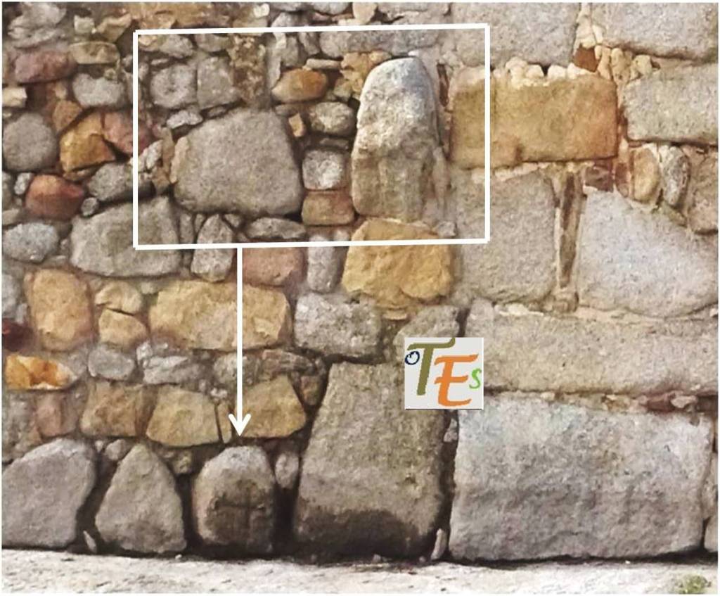 Este resto se encuentra justo al lado del toro estudiado en el primer artículo, en la iglesia visigoda. Bajo ellos como referencia y a nivel del suelo, se encuentra otra piedra donde se ve tallada una cruz, la cual comentamos anteriormente, quizás tallada al cristianizar el lugar, cambiando su sentido religioso sin perder su esencia primigenia.