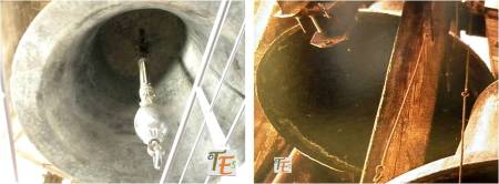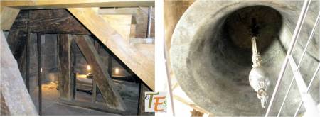 Desde aquí y por una escalera de madera accedemos al quinto piso interior, al de las campanas precisamente, que es el último cuerpo hasta el que se tiene acceso en el plano turístico. Sobre una fuerte base de madera, la admiración nos embarga, pues entramos directamente por debajo de su famosa campana gorda, cuyo volumen nos deja estupefactos por su grandiosidad, aunque en ella veamos la gran fisura que la identifica.