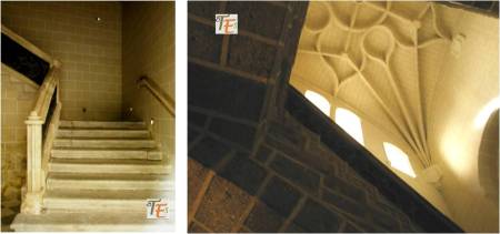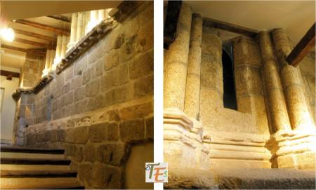Se comienzan a bordear sobre las paredes de la propia torre, por medio de los pasillos exteriores cubiertos y adosados a ella, donde observamos las columnillas que forman y adornan su segundo cuerpo, así como la franja saliente embellecida por bolas o perlas como era costumbre en aquella época y por encima alguno de los ventanucos que le dan una tenue luz al interior.