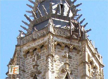 Este dato se confirma según una carta del arzobispo Gil de Albornoz, que nos sirve como documento excepcional, correspondiendo al año 1345 pues dice: “Cuando estaba a punto de acabarse la catedral, cayó la torre de las campanas, derribando de mala forma gran parte de esta”. La torre sur que se debería elevar tanto como la torre norte, al menos había llegado posiblemente en su construcción hasta su propio campanario.