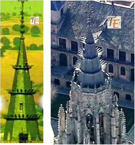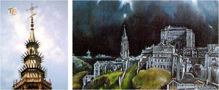 Torre norte o de las campanas, con una altura de más de 90 metros de altura, con una belleza inusitada, siendo vista a lo lejos desde todos los contornos, aún estando por delante el palacio imperial, que se encuentra en la colina más alta y que el pintor Doménico Theotocópulis conocido como el Greco, pintó dicha torre a un lado de dicho palacio, para que esta ciudad fuese reconocida universalmente, de ahí la identidad tan especial la de esta atalaya religiosa. Debió de tener su compañera al lado sur, pero esta se hundió.