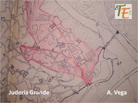 La judería mayor se extendió hacia S. Cristóbal (Montichel) cuya cerca podemos ver hoy desde la Calle Descalzos extendiéndose hacía S. Cipriano.
