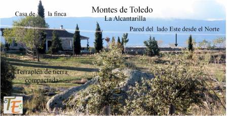 Entonces se podían ver las dos zonas o alas interiores del muro, que iban de mayor a menor, es decir, desde la zona más profunda de lo que fue el pantano, a la más somera hacia los lados, distinguiendo dos grandes paredes, una de ellas aún en parte revestida de granito, como es lógico hacia la zona del arca, pues en su exterior se halla el terraplén de sujeción de su largo paredón, el cual  está dividido en dos partes, al Este y al Oeste.