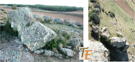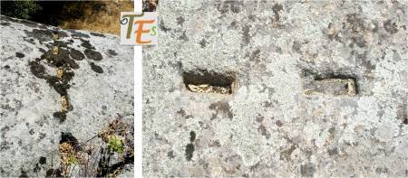 Allí, con asombro, nos encontramos otra huella que bajo nuestro humilde  criterio, creímos  que debía ser importante desde un punto de vista hispano-romano.  Bajo las grandes peñas, se encontraba una especie de habitáculo rectangular de grandes dimensiones, pero lo más importante es que a nivel de tierra, estaba delimitado por grandes bloques de granito, lo cual remarcaba su identidad, pero también su logística.