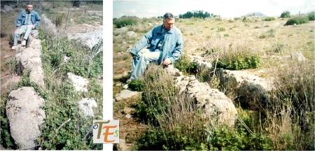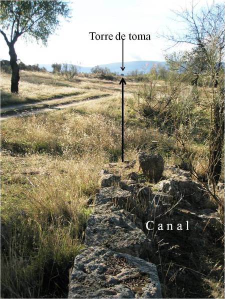 Esto era lógico, pues enseguida advertimos que nos encontrábamos cerca de las huellas por donde pasaba el antiguo canal de abastecimiento de agua. Aunque bastante deteriorado, se veían muy bien los cimientos que formaban a este, con una base y sobre esta, algunos hitos que levantaban dicho canal, para llevar la presión conveniente.