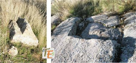 La sorpresa no se hizo esperar, pues pudimos observar dos grandes cúmulos de piedras de granito amontonadas. Observamos que se  encontraban talladas de forma rectangular, cuya peculiaridad es que todas se hallaban huecas longitudinalmente en su parte central, con forma semicircular.