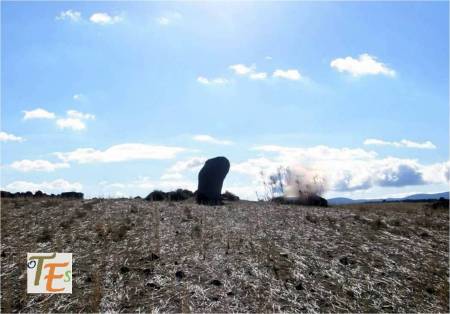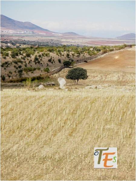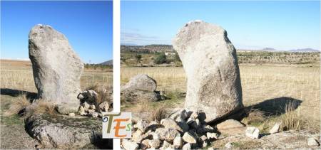 Eran demasiadas emociones para una sola mañana, sobre todo para personas como nosotros, que disfrutamos con cualquier encuentro que tenemos con este tipo de vestigios tan antiguos. Pero aún quedaba más, pues al volver la vista desde el peñascal hacia el norte, en medio de un gran campo en barbecho, bajando una ladera, vimos a lo lejos lo que bien podía ser lo que  llaman una “piedra caballera”.
