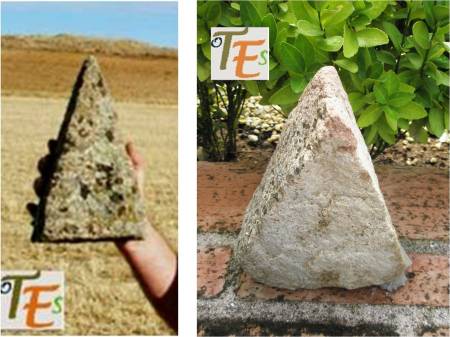 Para terminar este artículo sobre el retorno a la presa de La Alcantarilla, diré que cerca del monolito, entre otras piedras encontré una piedra tallada en forma de cuña. Recuerdo que en otro anterior recorrido y muy cerca de aquí, mi compañero halló otra cuña idéntica.