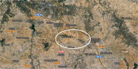 Lo más sorprendente es que bajo nuestros pies se encuentran las diferentes poblaciones de sus alrededores, como son los pueblos de Almonacid, Villaminaya, Mascaraque, Chueca, Mora, Ajofrín, Sonseca, Mazarambroz, Burguillos, Arges, Layos, Noez o Las Nieves, es decir toda una gozada.