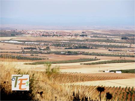 Al fondo hacia el Este, se observa la figura de la fortaleza de Almonacid sobre un alto cerro. Este topónimo según el investigador Jiménez de Gregorio, pudiera venir de Almonaster, pues su magnífico castillo de época islámica posiblemente contuviera un monasterio, formando dicho conjunto un gran “ribat”.
