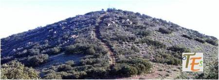 Pasando una barrera metálica con cadena, comenzamos la subida por el mismo camino sin desvíos, el cual fuimos ascendiendo no sin trabajo, conduciéndonos hasta una especie de depósito de riego, donde cambiamos de dirección hasta llegar por dicha senda al primer collado de la sierra, el Portachuelo, que se encuentra a 846 m., dejando a un lado el cerro Pedro de 929 m.