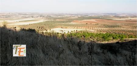 Una vez en la cima, descansamos para coger fuerzas. Pese a la neblina, había salido el sol a lo largo de la subida y nos acompañaba un viento suave, por lo que se quedó en una buena mañana. Desde el lugar más alto de esta sierra de Nambroca, se observaba bajo nosotros un paisaje dominado por el llano, viendo algunos pinos y a los olivos que se extendían bajo nuestros pies, con sus líneas llenas de verdor dando contraste a las tierras rojas y blanquecinas, tachonándolas.