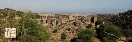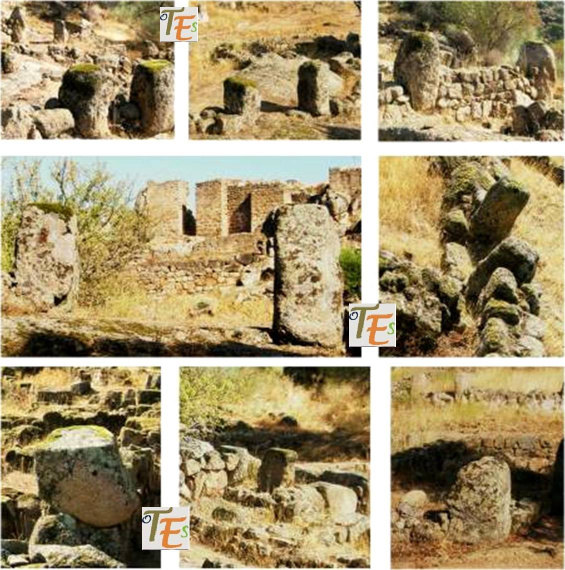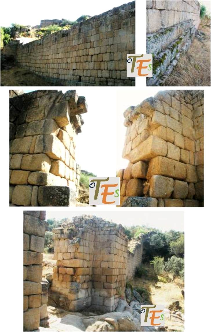 Más tarde nos adentramos por la zona sur de la misma, por una zona de muralla derruida al interior de la ciudad, advirtiendo que el lugar estuvo muy habitado por los montones de piedras que se observan junto a carrascas y almendros. Es impresionante ver el grandioso lienzo que determina el  perímetro de toda la ciudad, de ocho hectáreas, con dos puertas y varios postigos, sus entradas y salidas y sus torres defensivas rectángulares, haciendo de este enclave un lugar inexpugnable.