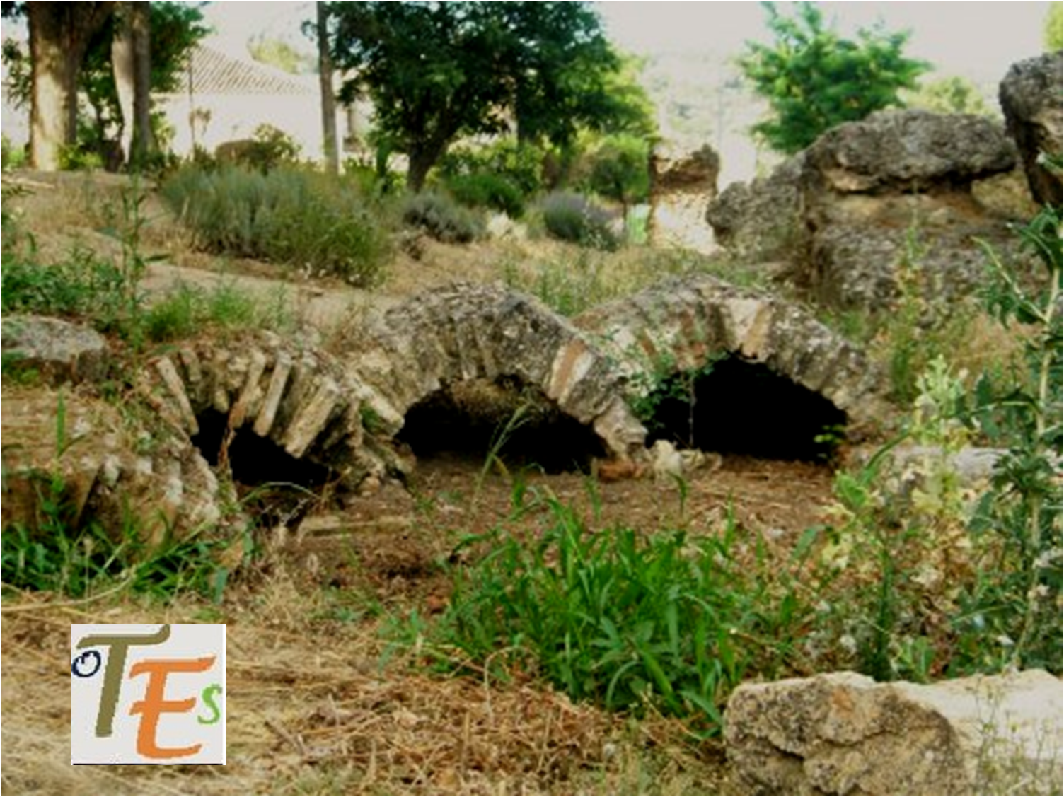 Pero aún queda más, pues saliendo fuera del recinto por el camino de salida hacia el sur, nos encontramos uno de sus cementerios, de los dos que contenía este enclave.Según se nos cuenta y como mandaba la costumbre coránica,  por la posición de los cuerpos de los cadáveres allí hallados,  estos se encontraban yaciendo de costado, mirando hacia la Meca en Arabia, por tanto los túmulos se encuentran bien orientados.