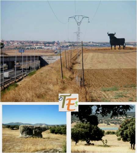 Para el toro de Menasalbas, sales del pueblo hacia San Martín y a medio kilómetro, a la izquierda tomarás un camino rural de la diputación de tierra, y cuando llegues a una bifurcación tomarás el camino de la derecha, hasta llegar a la casa de la Tórtola y algo más adelante, a la izquierda verás una valla de piedras y en lo alto el famoso toro.