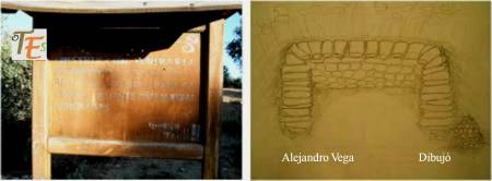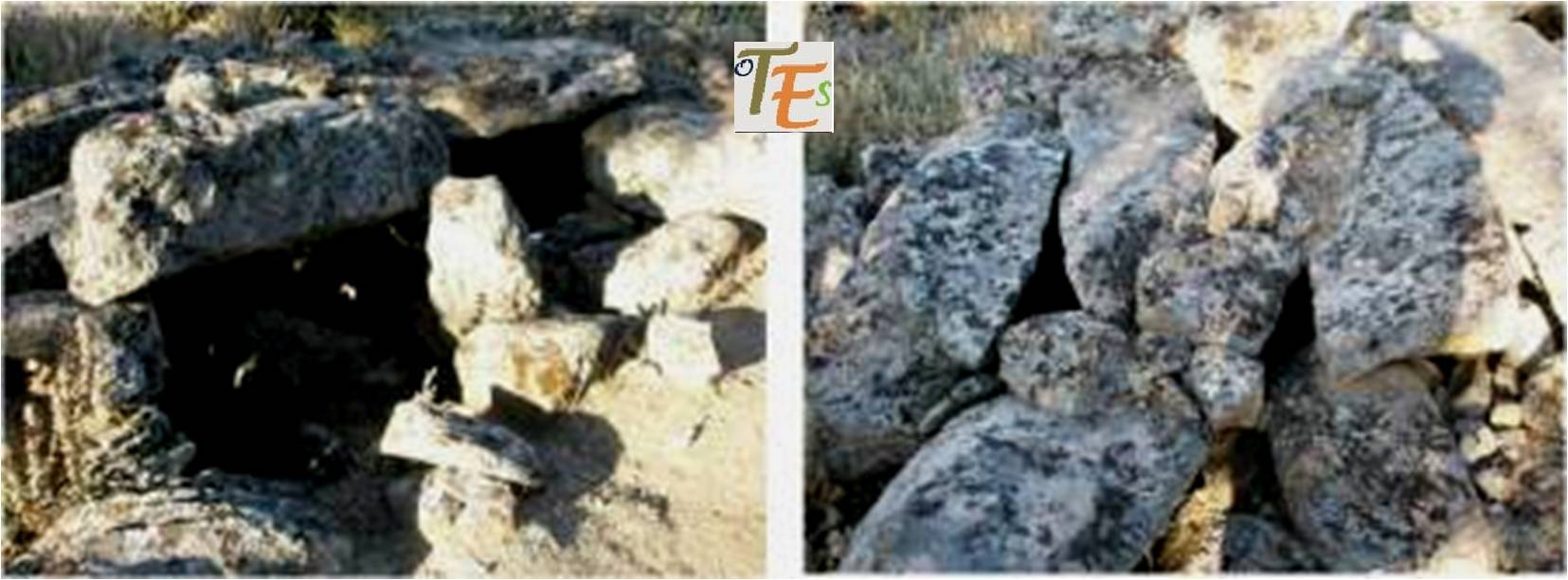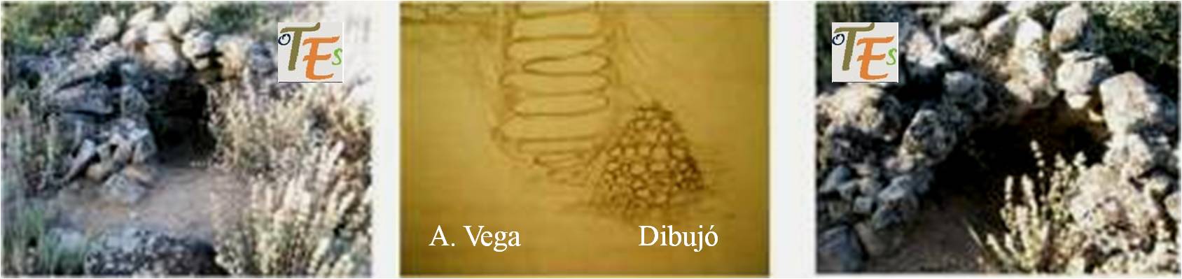 Pero lo que más me sorprendió, fue el hito de piedras con su hueco central, al lado de uno de sus corredores, según mi dibujo, preparado para algún animal de su entorno o bien como despensa de avituallamiento o quizás para guardar los tesoros para servirse de ellos en el más allá.