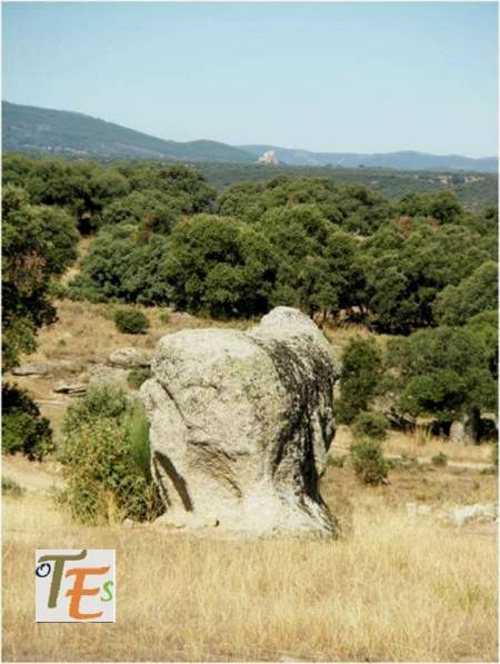 El que fuera tallado en una roca en este preciso lugar, tiene además otras posibles consecuencias más interesantes por misteriosas, que serán determinadas por mi parte en otro lugar. Pero lo que si cotejo, es que desde este lugar y por la parte trasera del tótem, se divisa a lo lejos el “Cerro de la Cobertera” perteneciente a Ventas con Peña Aguilera.