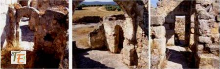 Su aparejo es de piedra muy tosca con barro y nada se sabe de sus techumbres, aunque las dovelas que forman sus arcos de piedra, los hacen ser fortísimos estando algunos de ellos aún en pié, demostrándonos que el arco de herradura es de procedencia hispana.