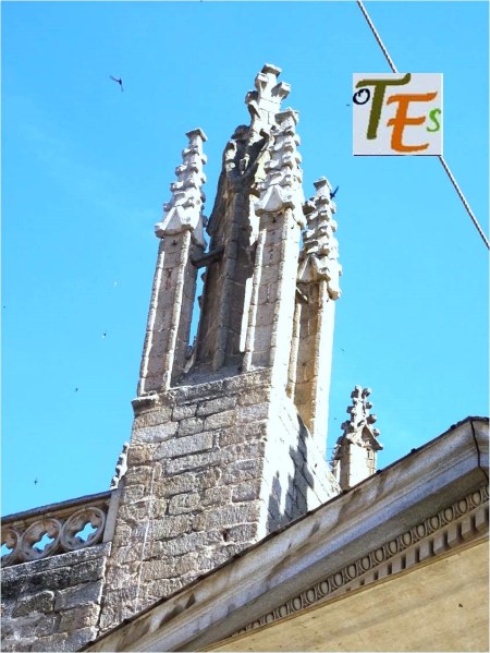 La originalidad en la construcción de la catedral de Toledo, no solo la podemos observar en su planta y sus alzados, también la vemos en sus elementos estructurales, como en sus pináculos, siendo ejemplar el que vemos en la instantánea. Sobre el contrafuerte, se levanta la cúspide central más alta, rodeada de otras cuatro más bajas, que además del peso necesario, contienen una hermosa nota gótica. Corresponde el mismo al lado de la epístola, hacia los pies del templo.
