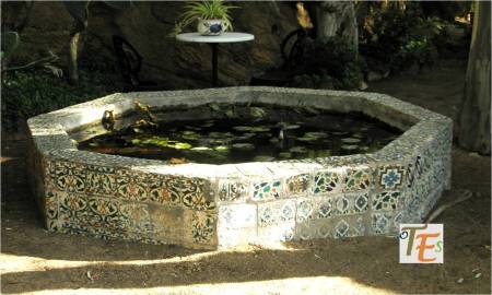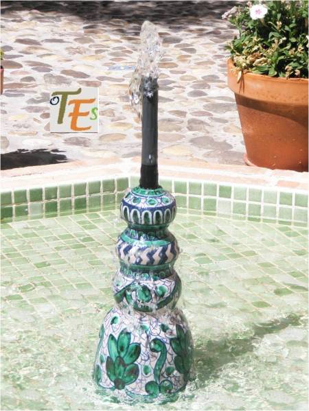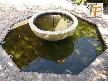 Rústica fuente octogonal, revestida con diferentes tipos de baldosines cerámicos, tanto de arista como de cuerda seca. Se encuentra esta en uno de los patios que guarda Toledo secretamente.