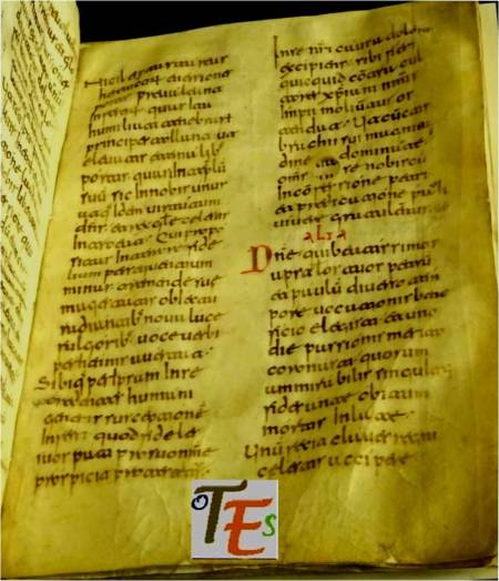 Página del Liber Misticus del siglo XIII, escrito en letra visigótica y con notación musical de oficios y misas, que perteneció a la parroquia mozárabe de Santa Justa y Rufina.