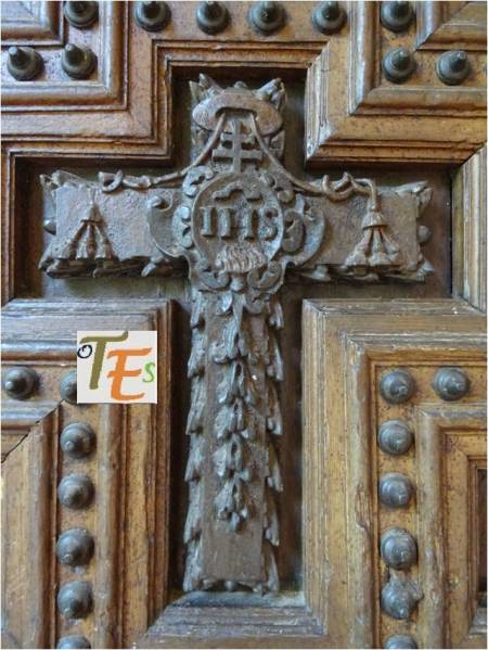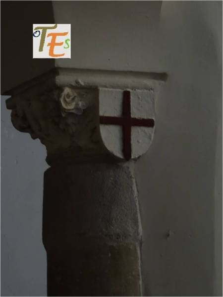 Escudo con cruz roja, la cual dicen pertenecer a la Orden del Temple, al encontrarse sobre una de las columnas de la iglesia latina de San Miguel “el alto”, que fue su primera deidad en Hispania. También se cuenta que dicho templo, fue de religión templaria.