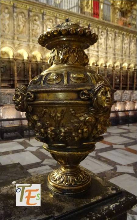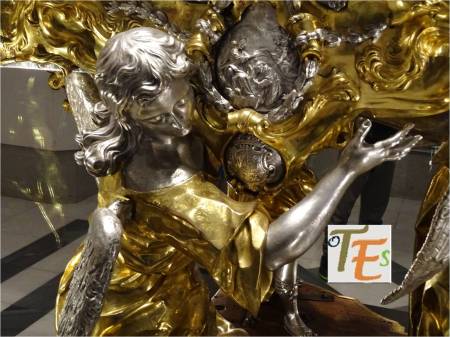 En el rico trono donde se asienta la custodia de Arfe, fue construido en madera el siglo XVIII y revestida con plata y bronce por el platero Machuca, con trazas del maestro Narciso Tomé. Este es uno de los bellos ángeles que la sustentan, con dos sobrerrelieves como la imposición de la casulla a San Ildefonso y el escudo del cardenal borbónico.