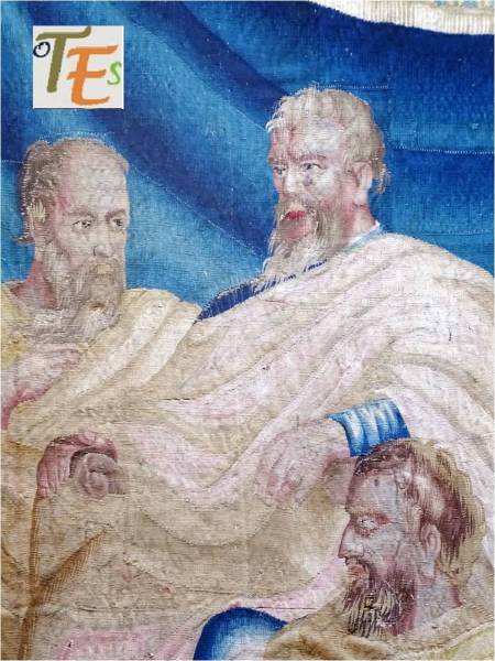 Detalle de uno de los tapices catedralicios, el cual nos ilustra que en la edad media, algunos médicos judíos o musulmanes, dejaban escritos sus saberes y experiencias, por medio de los monjes escribas de las órdenes monásticas, en sus scriptorium sobre pergamino, haciéndonos por dicho medio un grandioso legado.