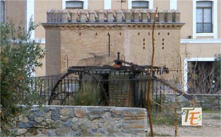Vestigio de una moderna noria y tras ella un peculiar palomar almenado. Estos elementos se encuentran formando parte de un cigarral modernista, que en sus primeros tiempos llegó a ser un hotel.