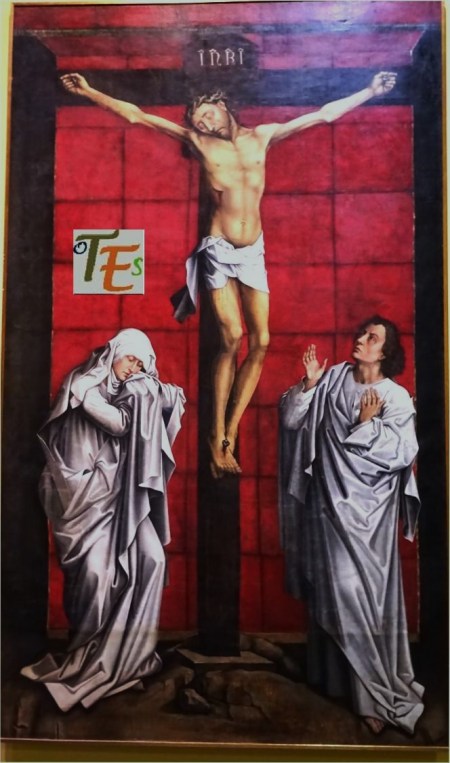 Sobria pintura al óleo de un calvario, copia de otra que se encuentra en el Escorial debido a Roger Van der Weyden. Este del Museo de Santa Cruz de Toledo, se le atribuye a Juan Fernández de Navarrete “el mudo”.