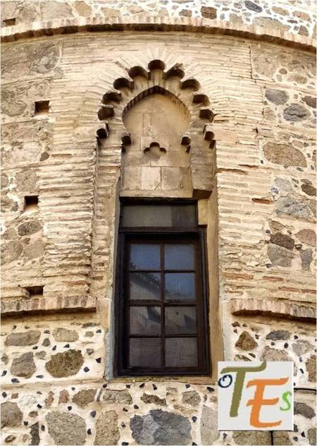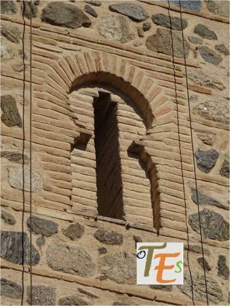 Uno de los típicos ventanucos que dan luz a una de las torres mudéjares toledanas, adornándose exteriormente con un típico arco islámico.