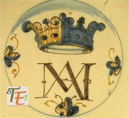 Antiguo baldosín de cerámica, contenedor del anagrama o símbolo coronado, sobre la virginidad de la virgen María. Se encuentra en la colección Vicente Carranza, en el Museo de Santa Cruz, que fue donada por el mismo en 2001 a la Junta de Comunidades de Castilla- La Mancha.