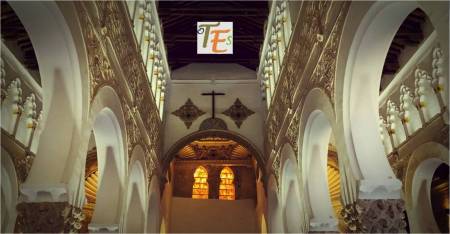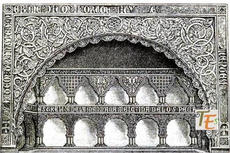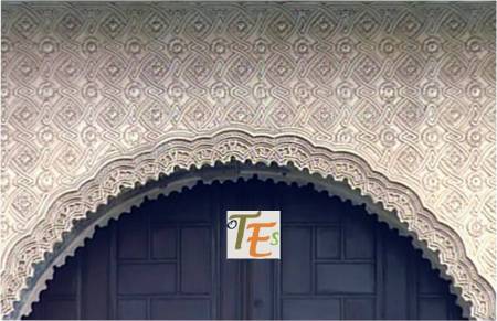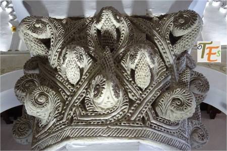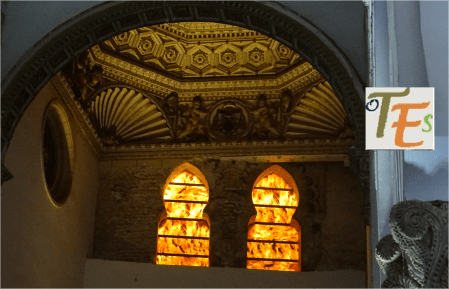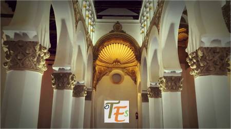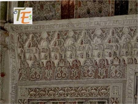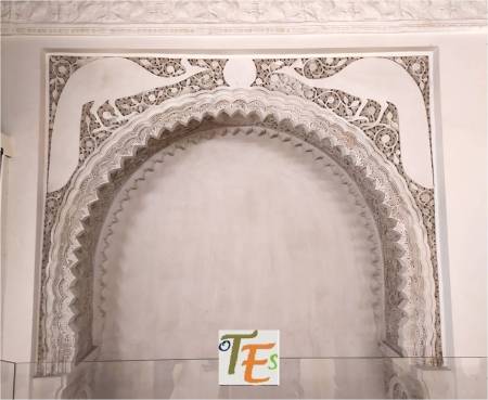 Una de las más significativas yeserías que se encuentran en el centro de esta ciudad de Toledo, con un bellísimo ataurique mudéjar, con pavos reales y puntas de diamantes.